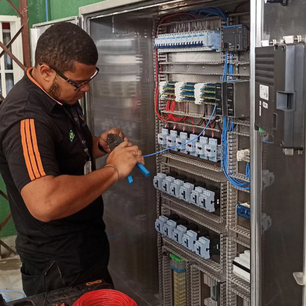 Montagem e instalação dos painéis elétricos e sensores de campo