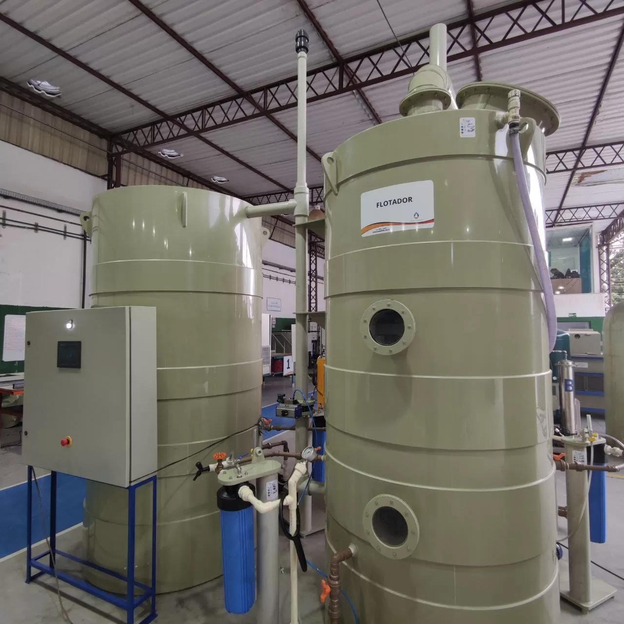 O Flotador da Acqua Nobilis é um equipamento desenvolvido para promover a separação físico-química de contaminantes em efluentes industriais e sanitários. Seu funcionamento é baseado na tecnologia de flotação por microbolhas de ar, que facilitam a ascensão de partículas em suspensão para a superfície, onde são removidas de forma controlada. Com estrutura cilíndrica e design compacto, o flotador é fabricado em polipropileno (PP), assegurando resistência e durabilidade mesmo em ambientes corrosivos ou com elevada agressividade química.