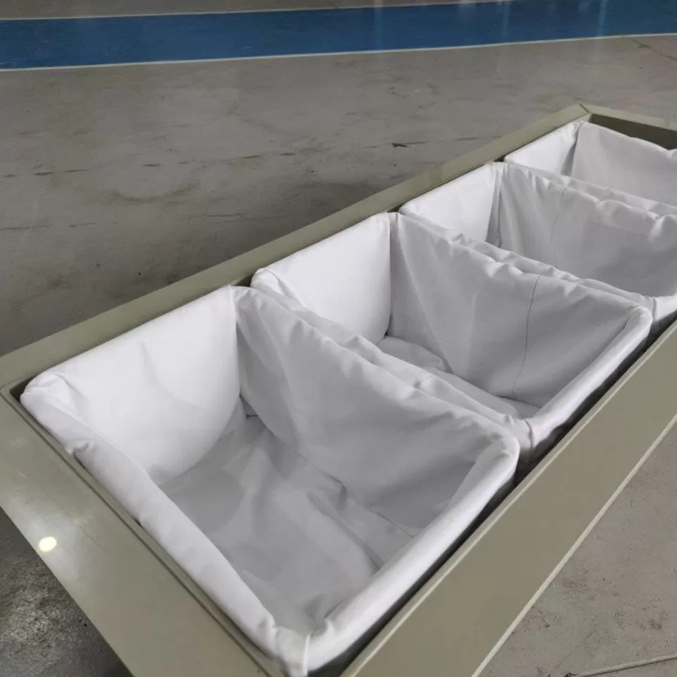 Componentes: Caixotes filtrantes adaptáveis com lonas de retenção