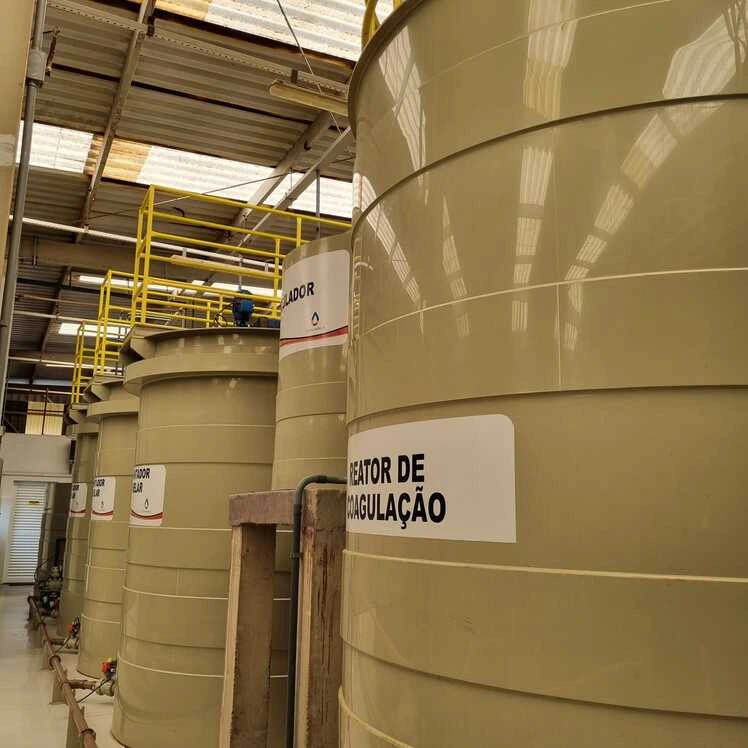 Substituição de tanques metálicos corroídos por novos tanques em polipropileno (PP), material que oferece alta resistência química, baixo custo de manutenção e longa durabilidade