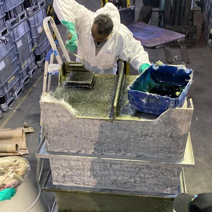 Função: Revestimento técnico com fibra de vidro para proteção química, estrutural e contra corrosão em superfícies expostas