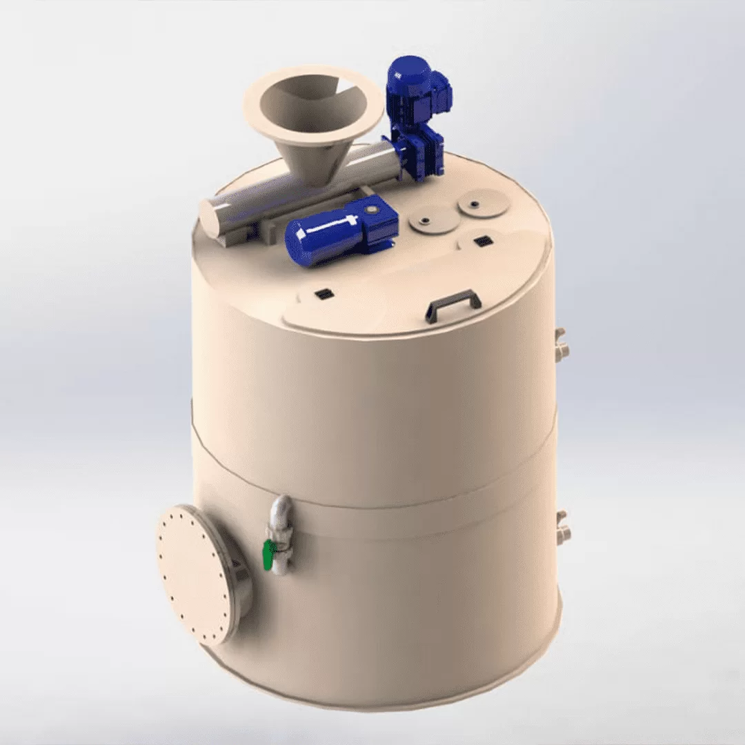 Ao manter o conteúdo constantemente em movimento, o tanque de agitação garante que sólidos não se depositem no fundo e que a composição da solução se mantenha homogênea. O sistema é composto por agitadores com hélices em PP conectadas a um eixo de inox, acionados por motores especificados conforme as características do produto processado. Para aplicações que exigem maior flexibilidade, o equipamento também pode ser configurado com agitação pneumática.