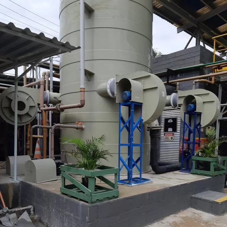 Vantagens: Alta eficiência na remoção de compostos voláteis, baixa manutenção, resistência química e longa vida útil